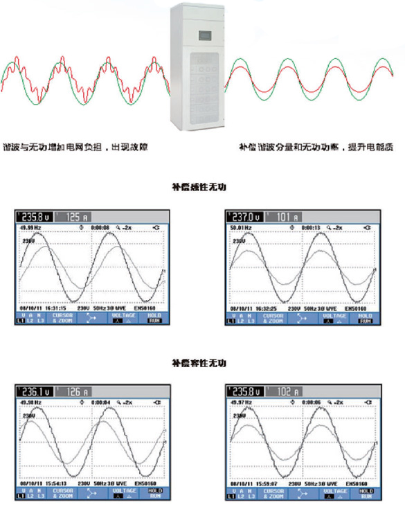 2.The most function: Reactive power and reactive power compensation, filtering system harmonics, solving problem of three-phase unbalance, eliminating voltage fluctuation caused by reactive power, and power quality of on-line detection system. |