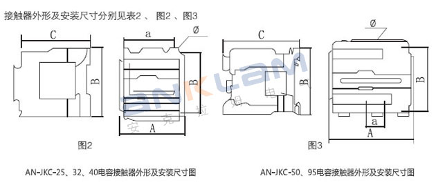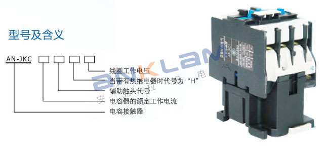 AN-JKC series capacitance contactor is exclusively used in compensation capacitor equipment which is AC 50Hz or (60Hz), rated working voltage 400V and rated control compensation capacitor equipment of capacitor capacity to 65Kavr, it's for distribution loop to input and switchover of compensating capacitor for improve power factor. And also effectively can reduce inrush current of capacitor dynamic engine and reduce operating overvoltage.