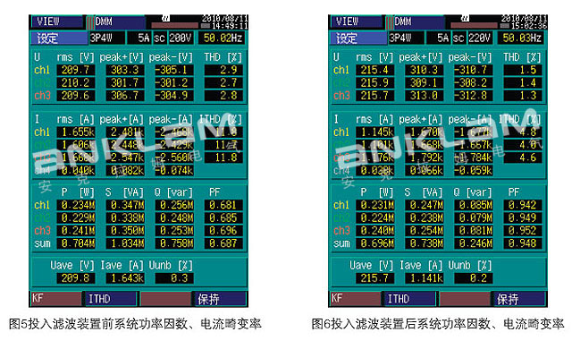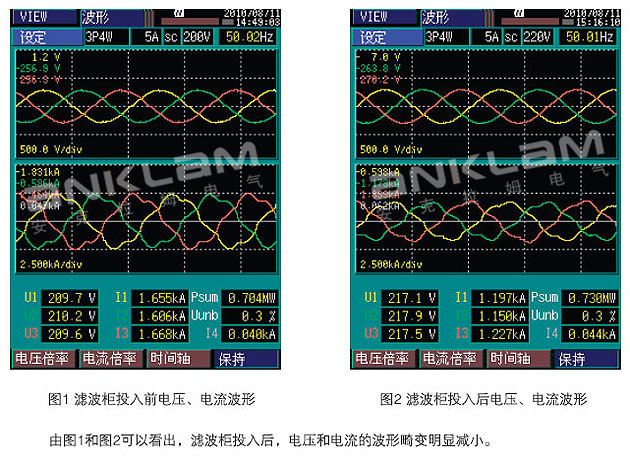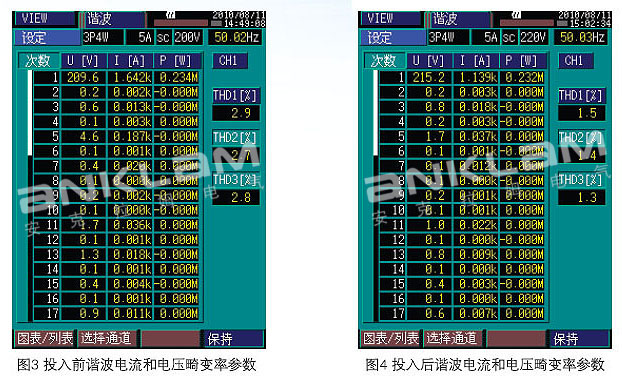 滤波柜投入前、后系统谐波电流参数如(表1)所示: