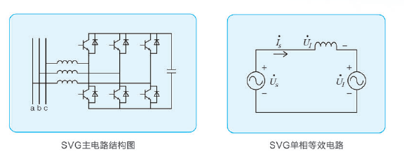 SVG ( Static Var Generator静止无功发生器,又称STATCOM )的基本原理就是将自换相桥式电路通过电抗器或者直接并联在电网上(如下图),适当的调节桥式电路交流侧输出电压的相位和幅值,或者直接控制其交流侧电流,使该电路吸收或者发出满足要求的无功电流,实现动态无功补偿的目的。